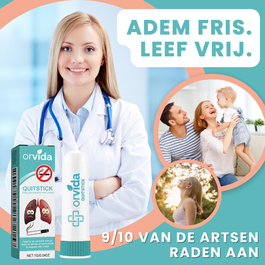 Orvida Quitstick is geen vervanging voor medische behandelingen of therapieën om te stoppen met roken of bij long- en ademhalingsproblemen.