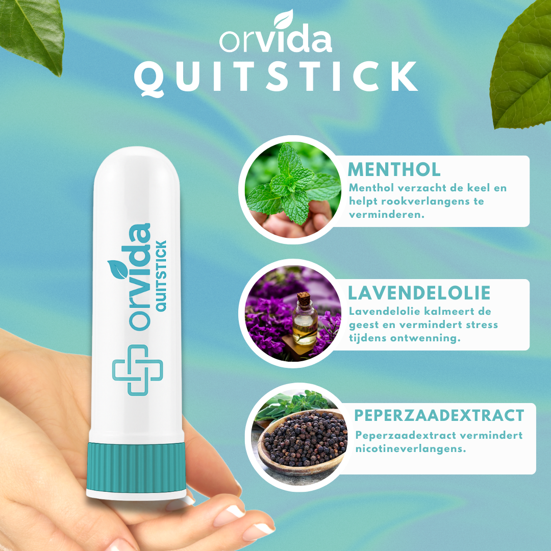 Orvida Quitstick is samengesteld uit 100% natuurlijke ingrediënten en is veilig voor dagelijks gebruik. Het bevat géén nicotine, zware medicatie of schadelijke toevoegingen.