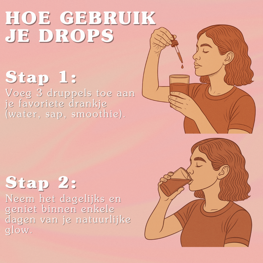 Begin met de standaarddosis en bouw je glow rustig op: verhoog of verlaag het aantal druppels stap voor stap binnen de aanbevolen dagdosis.